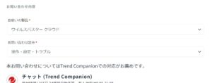 - トレンドマイクロ社の問い合わせからWebで問い合わせ