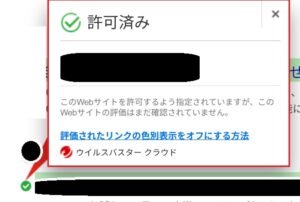 「このWebサイトを許可するよう指定されていますが、このWebサイトの評価はまだ確認されていません。ウイルスバスター クラウド」